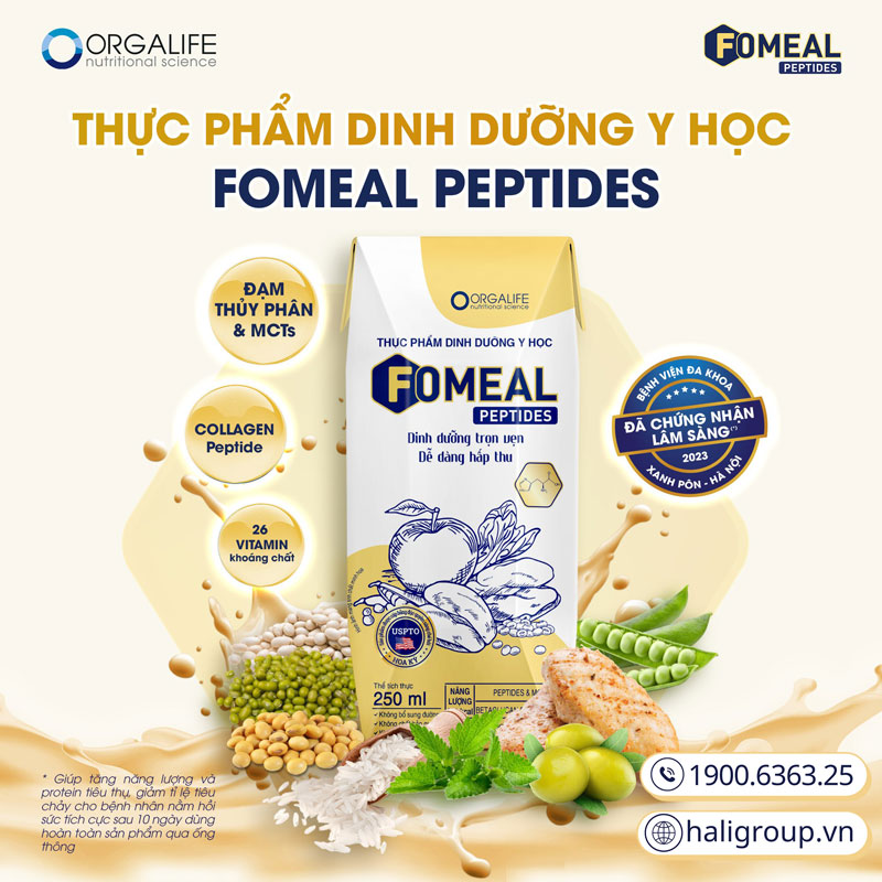 Được sản xuất theo tiêu chuẩn chất lượng nghiêm ngặt, Fomeal Peptides hiện là lựa chọn đáng tin cậy tại nhiều cơ sở y tế, trung tâm chăm sóc sức khỏe và gia đình có người bệnh cần bổ sung dinh dưỡng chuyên sâu.